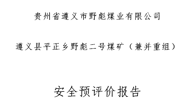 遵義縣平正鄉(xiāng)野彪二號(hào)煤礦(兼并重組)安全預(yù)評(píng)價(jià)