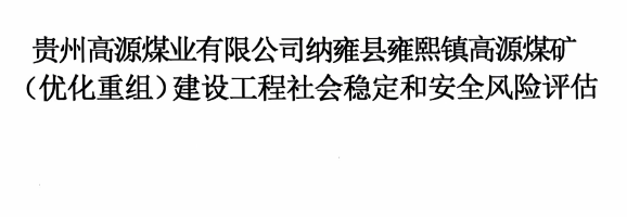 納雍縣雍熙鎮(zhèn)高源煤礦(優(yōu)化重組)建設(shè)工程社會(huì)穩(wěn)定和安全風(fēng)險(xiǎn)評(píng)估報(bào)告書