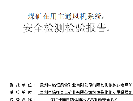 貴州魯中礦業(yè)有限責(zé)任公司織金縣化起鎮(zhèn)江西煤礦礦井通風(fēng)阻力測定