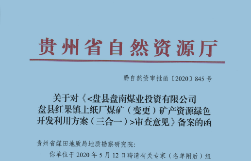 盤縣盤南煤業(yè)投資有限公司 盤縣紅果鎮(zhèn)上紙廠煤礦(變更) 礦產(chǎn)資源綠色開發(fā)利用方案(三合一)