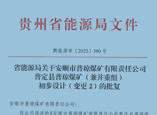 普定縣普瓊煤礦(兼并重組)初步設(shè)計(變更2)