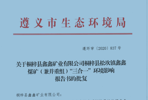 桐梓縣鑫鑫礦業(yè)有限公司桐梓縣松坎鎮(zhèn)鑫鑫煤礦(兼并重組)“三合一”環(huán)境影響報(bào)告