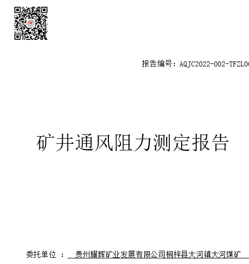 桐梓縣大河鎮(zhèn)大河煤礦礦井通風(fēng)阻力測定