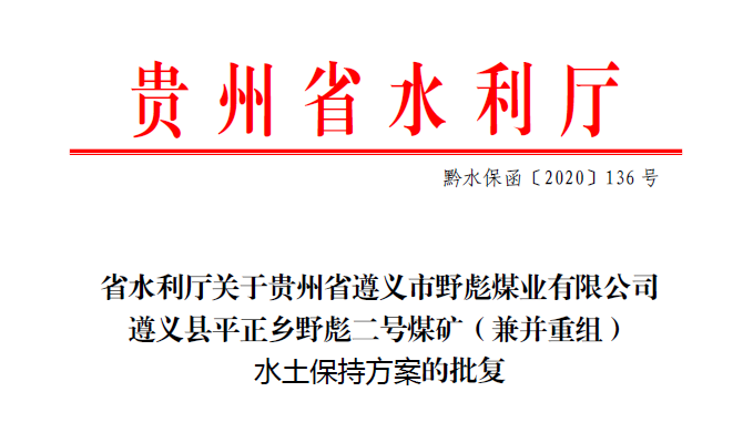 貴州省遵義市野彪煤業(yè)有限公司遵義縣平正鄉(xiāng)野彪二號(hào)煤礦 (兼并重組)