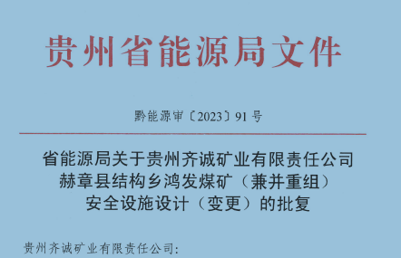 貴州齊誠(chéng)礦業(yè)有限責(zé)任公司 赫章縣結(jié)構(gòu)鄉(xiāng)鴻發(fā)煤礦(兼并重組)安全設(shè)施設(shè)計(jì)(變更)