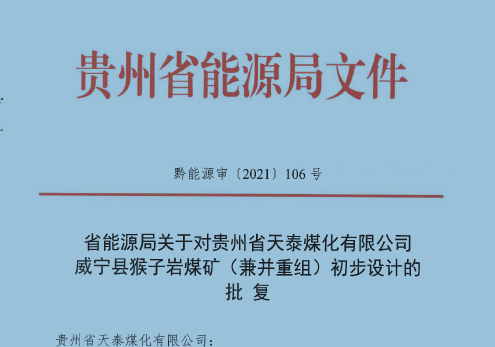 貴州省天泰煤化有限公司威寧縣猴子巖煤礦初步設(shè)計(jì)