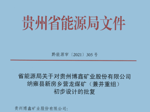 貴州博鑫礦業(yè)股份有限公司納雍縣新房鄉(xiāng)營(yíng)龍煤礦(兼并重組)初步設(shè)計(jì)