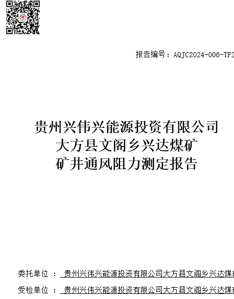 大方縣文閣鄉(xiāng)興達煤礦礦井通風阻力測定報告