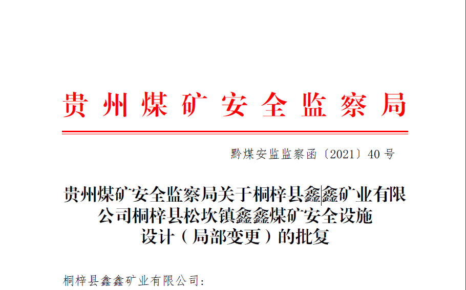 桐梓縣松坎鎮(zhèn)鑫鑫煤礦安全設(shè)施設(shè)計(jì)(局部變更)