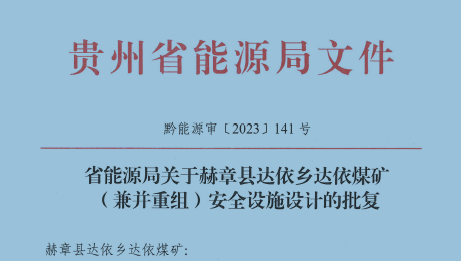 赫章縣達(dá)依鄉(xiāng)達(dá)依煤礦(兼并重組) 安全設(shè)施設(shè)計(jì)