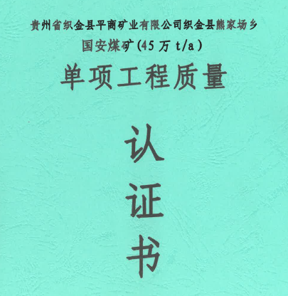 織金縣熊家場(chǎng)鄉(xiāng)國(guó)安煤礦單項(xiàng)工程質(zhì)量認(rèn)證