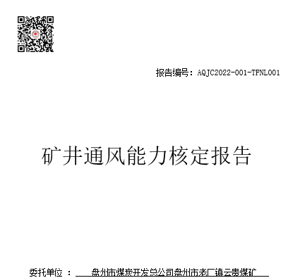 盤州市老廠鎮(zhèn)云貴煤礦礦井通風(fēng)能力核定