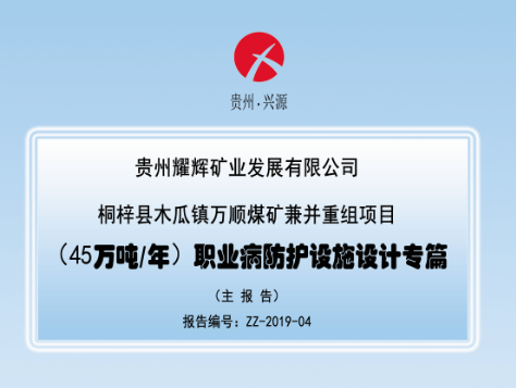 桐梓縣木瓜鎮(zhèn)萬順煤礦兼并重組項目 (45萬噸/年)職業(yè)病防護設施設計專篇