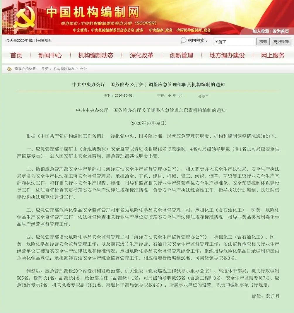 重要通知:機(jī)構(gòu)大變!關(guān)于調(diào)整應(yīng)急管理部職責(zé)機(jī)構(gòu)編制的通知