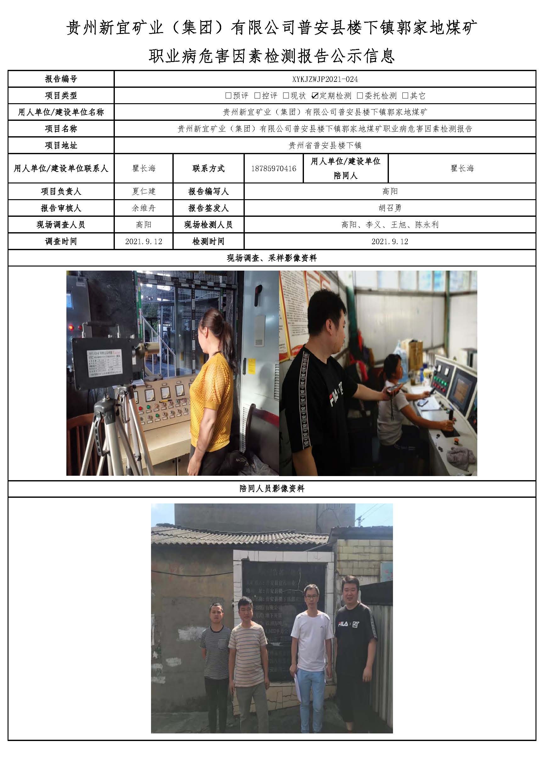 貴州新宜礦業(yè)(集團)有限公司普安縣樓下鎮(zhèn)郭家地煤礦 職業(yè)病危害因素檢測報告公示信息