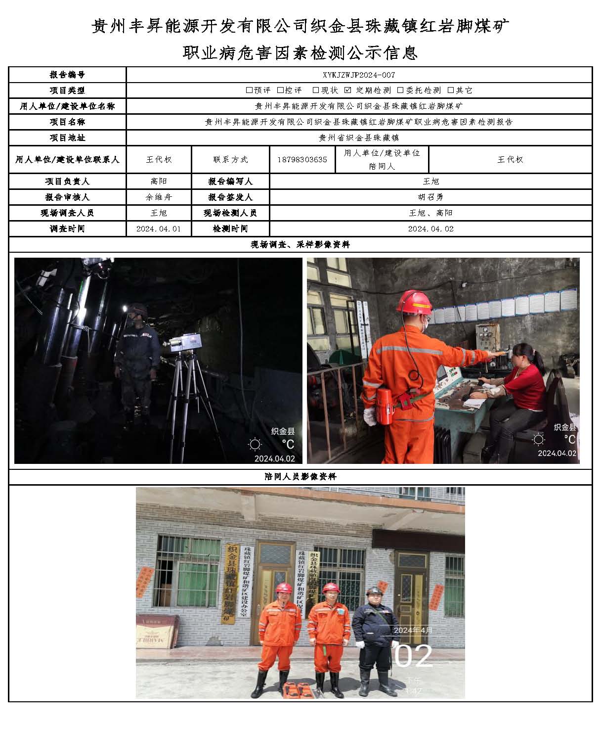 貴州豐昇能源開發(fā)有限公司織金縣珠藏鎮(zhèn)紅巖腳煤礦 職業(yè)病危害因素檢測公示信息