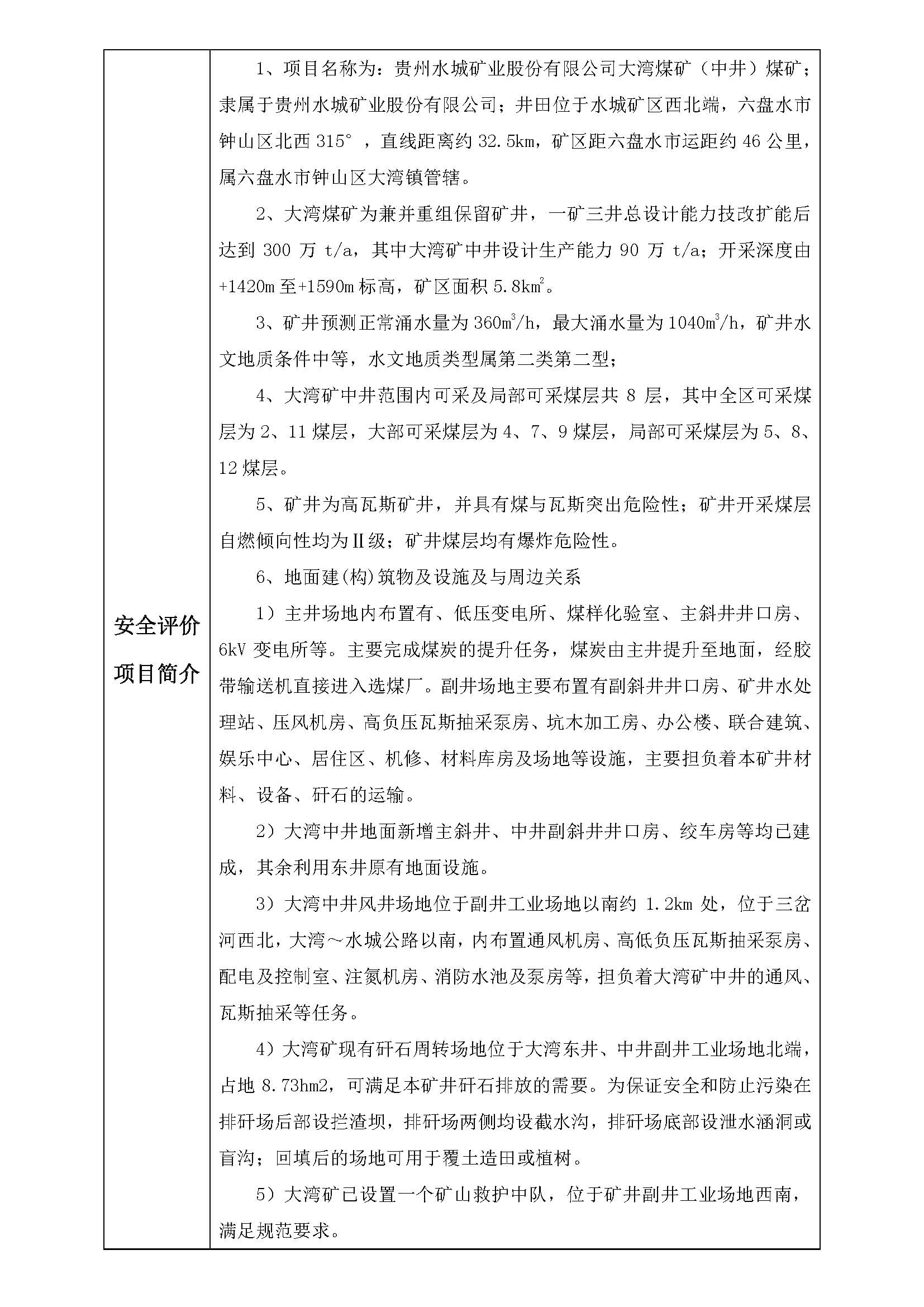 貴州水城礦業(yè)股份有限公司大灣煤礦(中井)安全預(yù)評價網(wǎng)上公開信息表