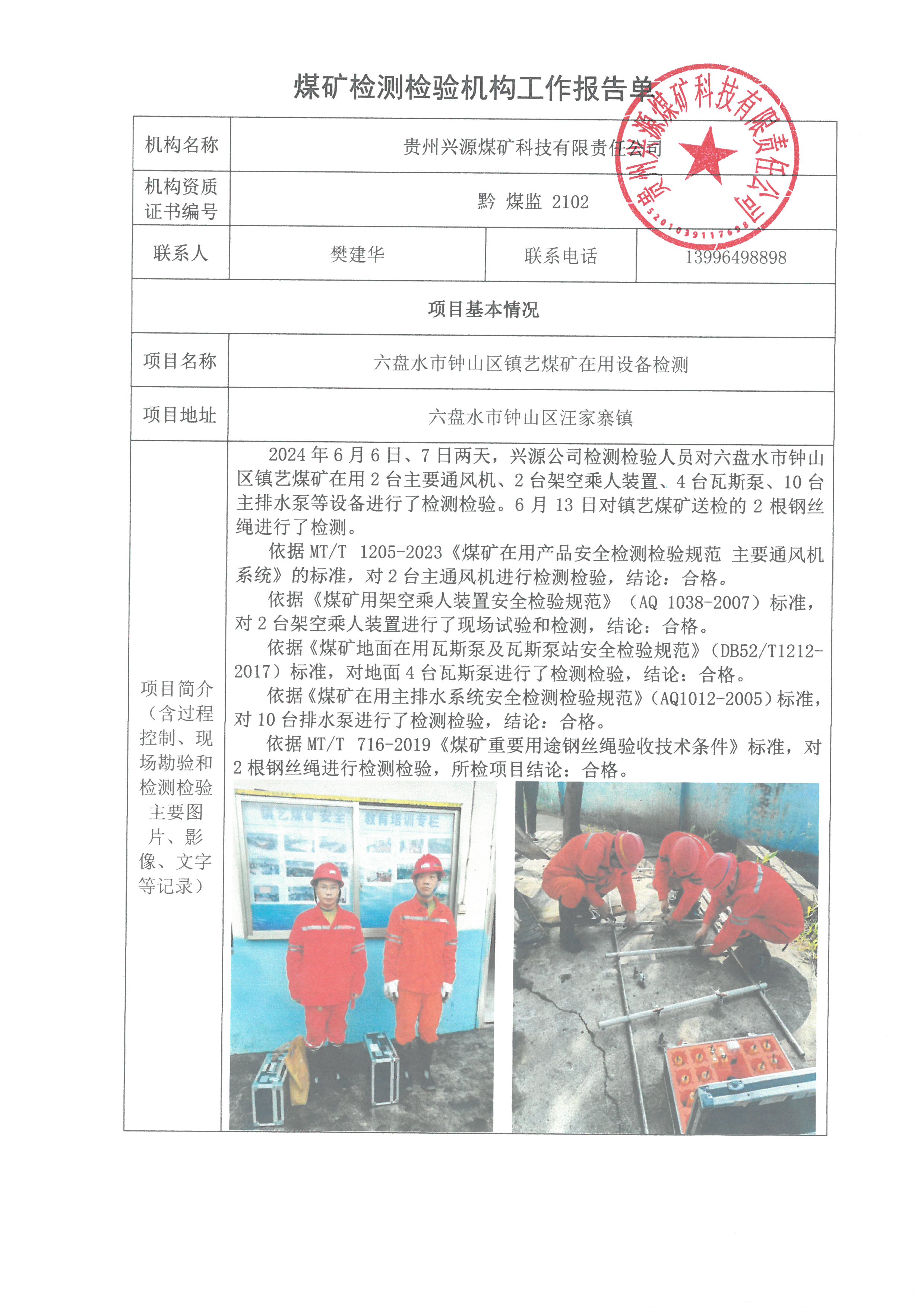 煤礦檢測檢驗機構(gòu)工作報告單【六盤水市鐘山區(qū)鎮(zhèn)藝煤礦在用設(shè)備檢測】