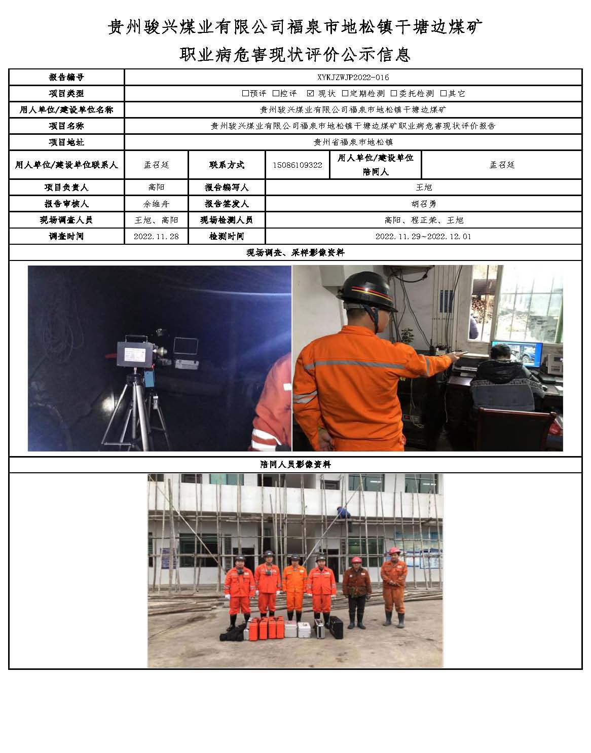 貴州駿興煤業(yè)有限公司福泉市地松鎮(zhèn)干塘邊煤礦職業(yè)病危害現(xiàn)狀評價公示信息
