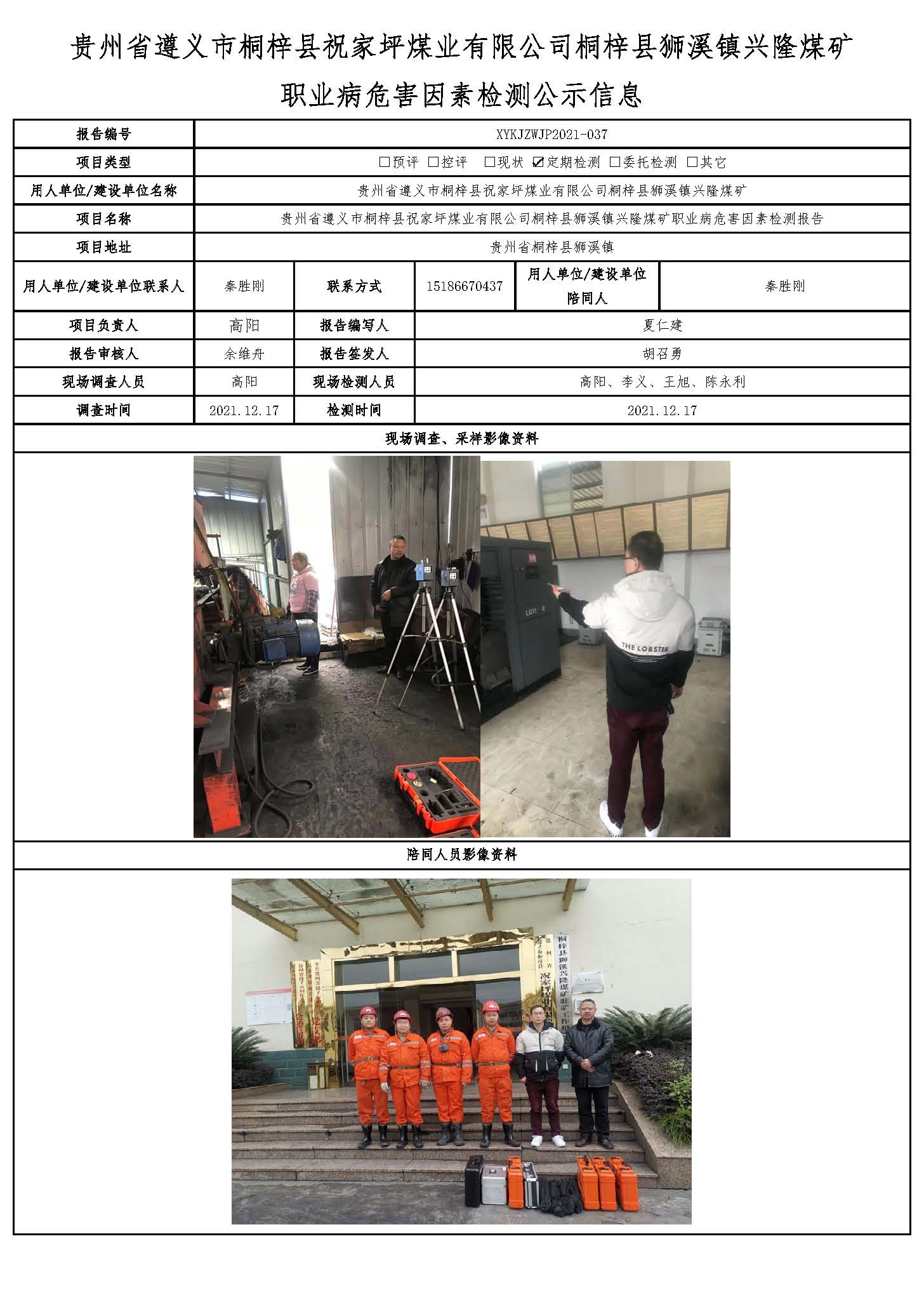 貴州省遵義市桐梓縣祝家坪煤業(yè)有限公司桐梓縣獅溪鎮(zhèn)興隆煤礦 職業(yè)病危害因素檢測公示信息