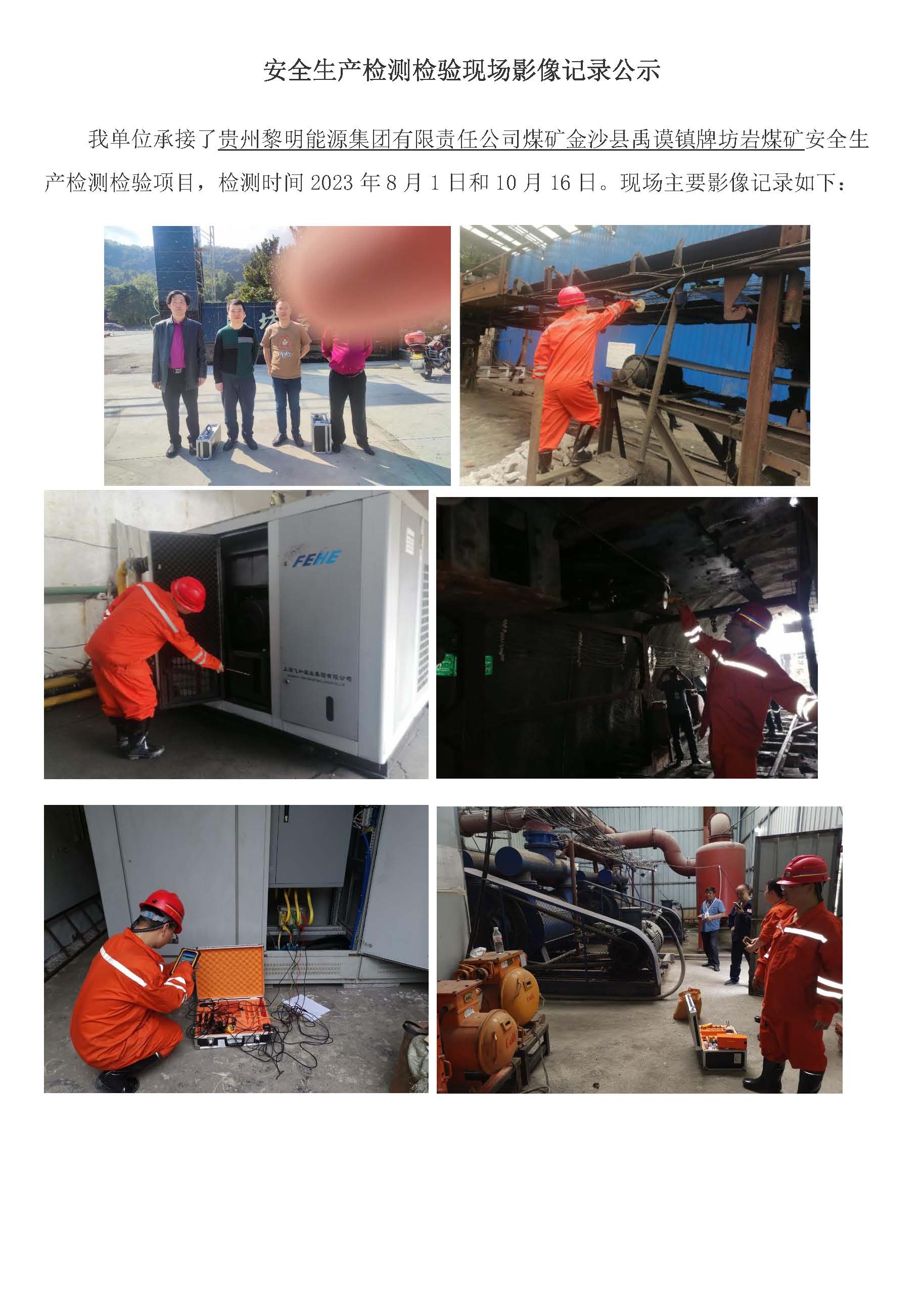 安全生產(chǎn)檢測(cè)檢驗(yàn)現(xiàn)場(chǎng)影像記錄公示(貴州黎明能源集團(tuán)有限責(zé)任公司煤礦金沙縣禹謨鎮(zhèn)牌坊巖煤礦)