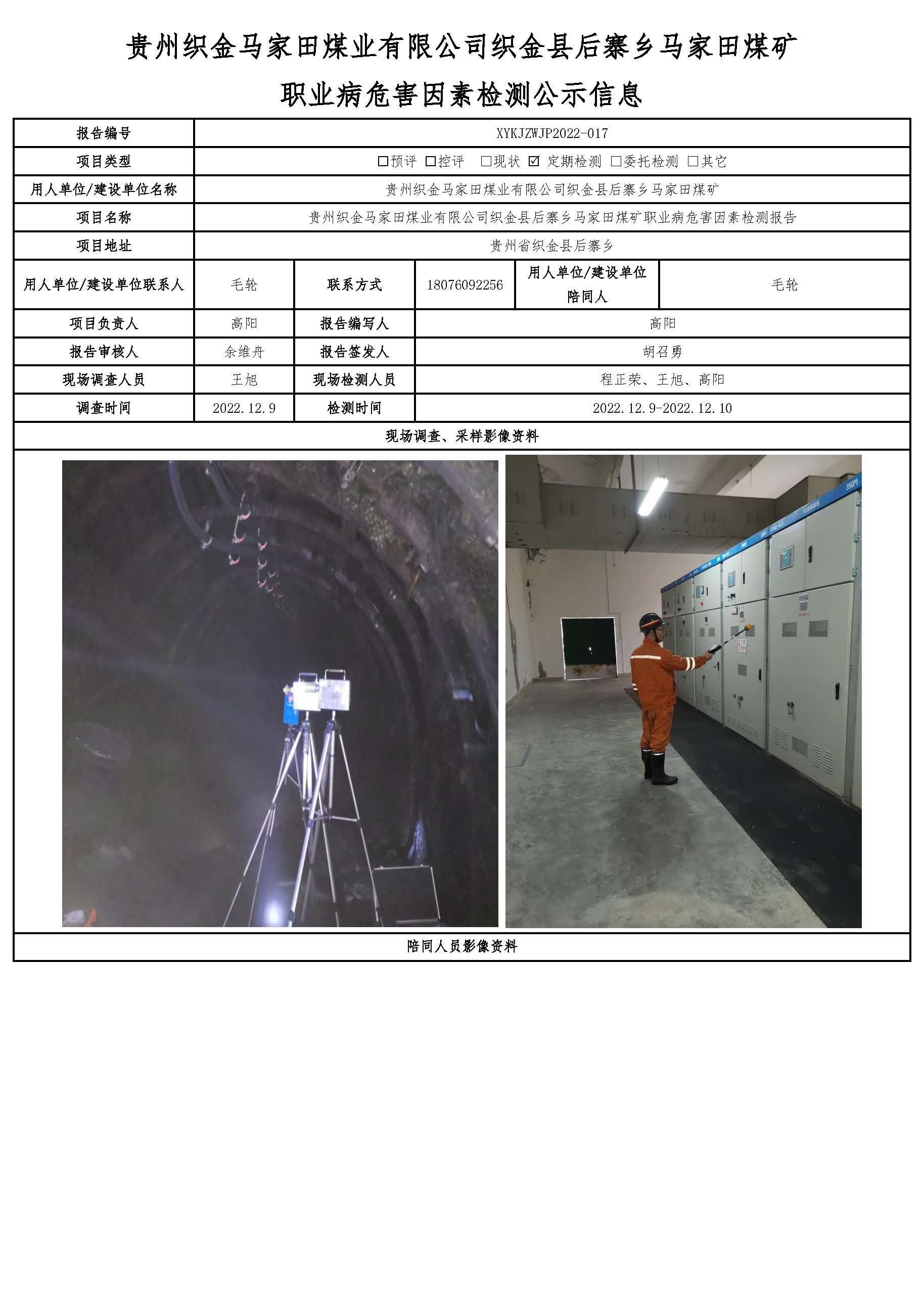 貴州織金馬家田煤業(yè)有限公司織金縣后寨鄉(xiāng)馬家田煤礦 職業(yè)病危害因素檢測公示信息