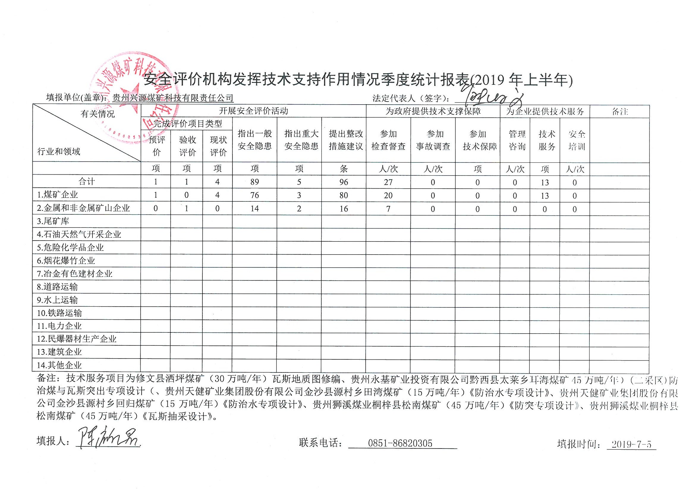 安全評(píng)價(jià)機(jī)構(gòu)發(fā)揮技術(shù)支持作用情況季度統(tǒng)計(jì)報(bào)表(2019年上半年)