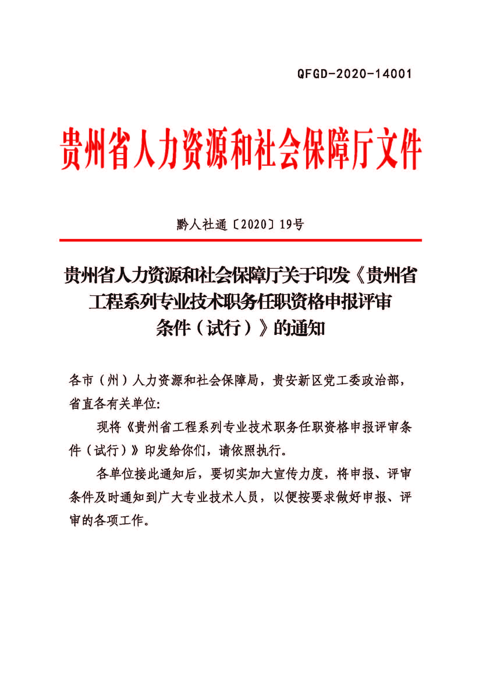 貴州省工程系列專業(yè)技術(shù)職務(wù)任職資格申報評審條件(試行)的通知
