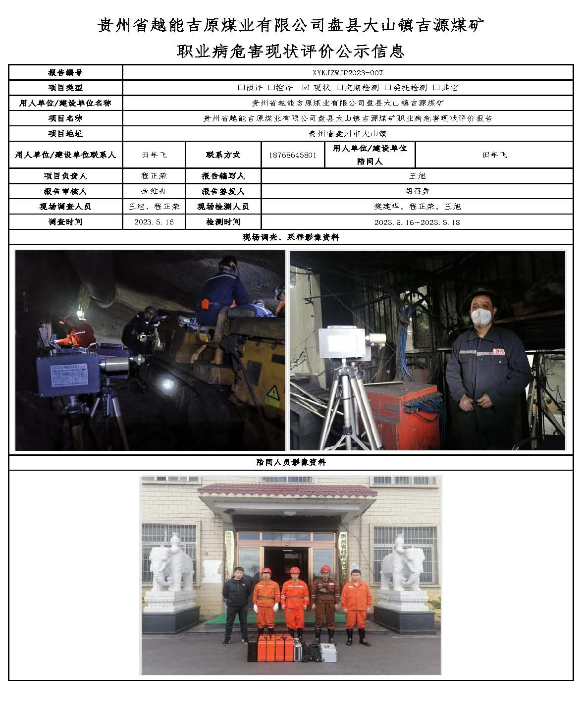 貴州省越能吉原煤業(yè)有限公司盤縣大山鎮(zhèn)吉源煤礦職業(yè)病危害現(xiàn)狀評價公示信息
