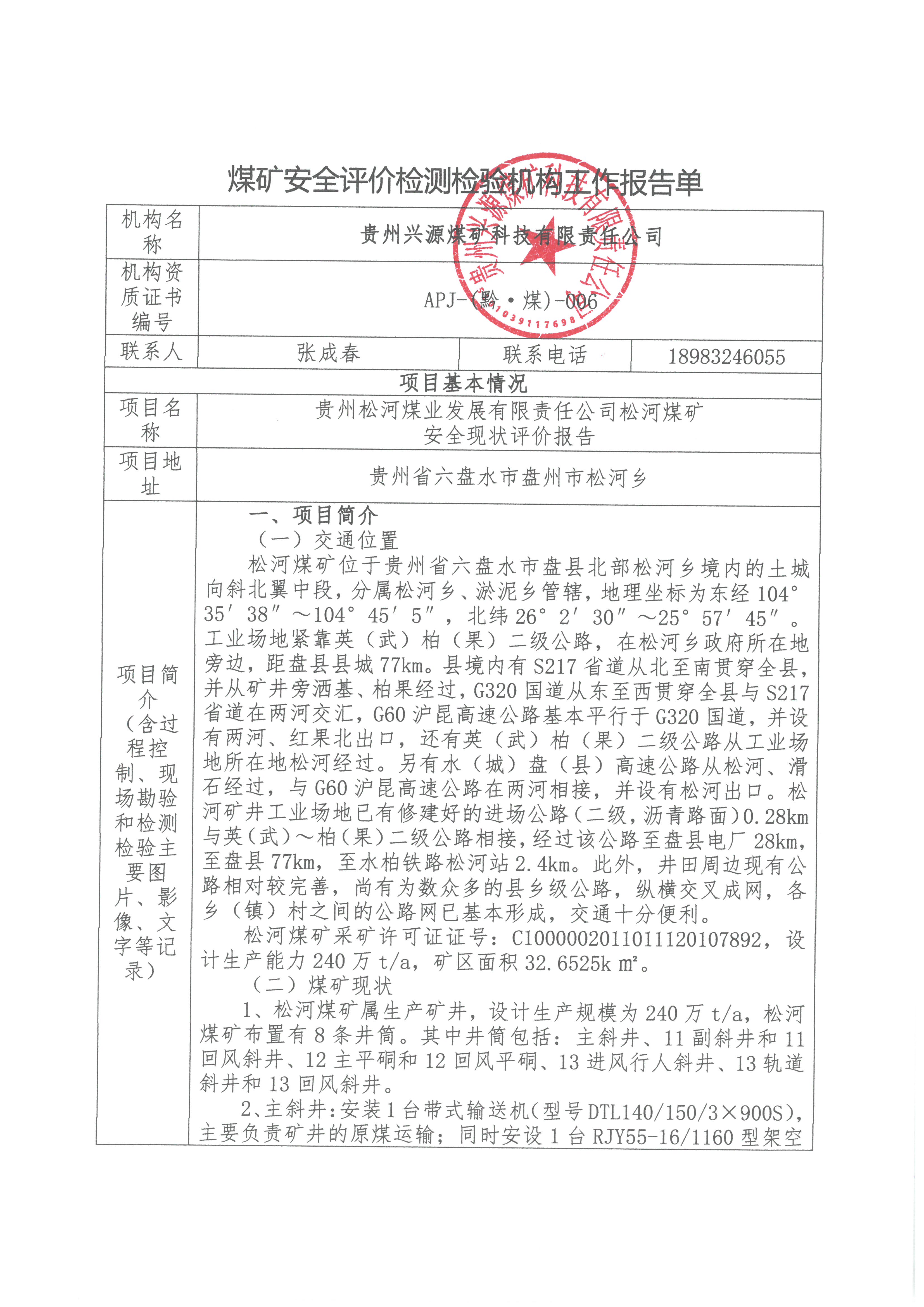 煤礦安全評(píng)價(jià)檢測(cè)檢驗(yàn)機(jī)構(gòu)工作報(bào)告單【貴州松河煤業(yè)發(fā)展有限責(zé)任公司松河煤礦 安全現(xiàn)狀評(píng)價(jià)報(bào)告】