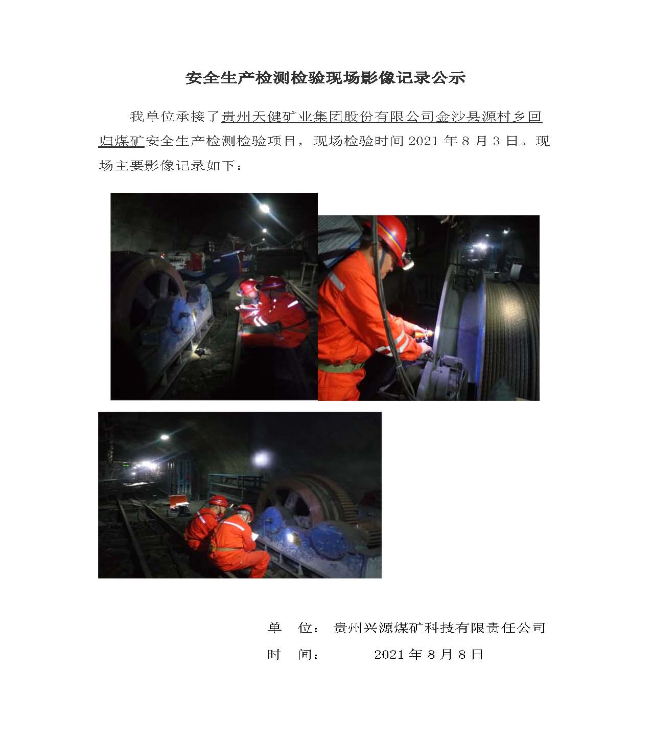安全生產(chǎn)檢測(cè)檢驗(yàn)現(xiàn)場(chǎng)影像記錄公示【貴州天健礦業(yè)集團(tuán)股份有限公司金沙縣源村鄉(xiāng)田灣煤礦】