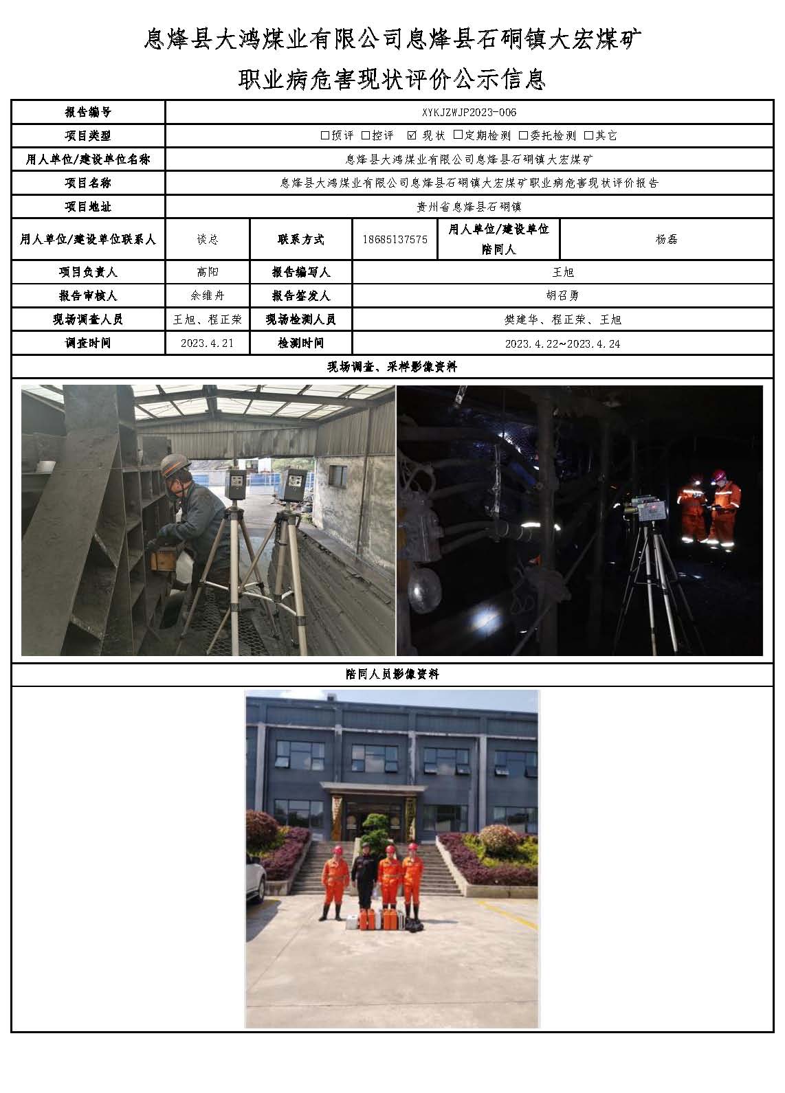 息烽縣大鴻煤業(yè)有限公司息烽縣石硐鎮(zhèn)大宏煤礦職業(yè)病危害現(xiàn)狀評(píng)價(jià)公示信息