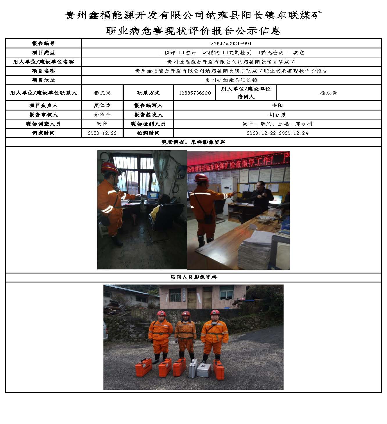 貴州鑫福能源開發(fā)有限公司納雍縣陽長鎮(zhèn)東聯(lián)煤礦 職業(yè)病危害現(xiàn)狀評(píng)價(jià)報(bào)告公示信息