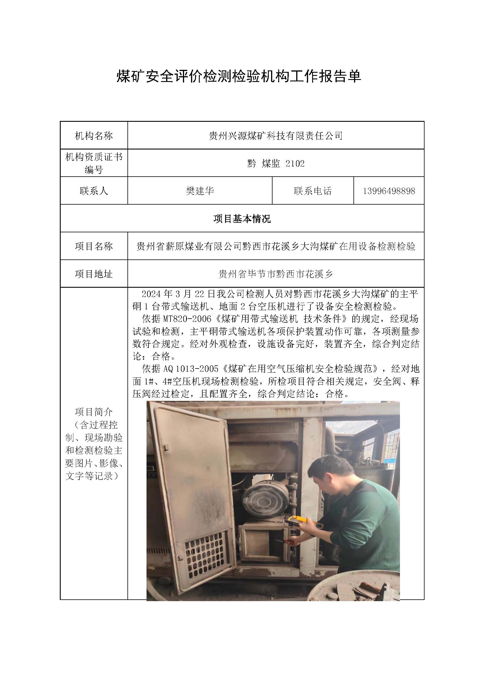 煤礦安全評(píng)價(jià)檢測(cè)檢驗(yàn)機(jī)構(gòu)工作報(bào)告單【貴州省薪原煤業(yè)有限公司黔西市花溪鄉(xiāng)大溝煤礦在用設(shè)備檢測(cè)檢驗(yàn)】