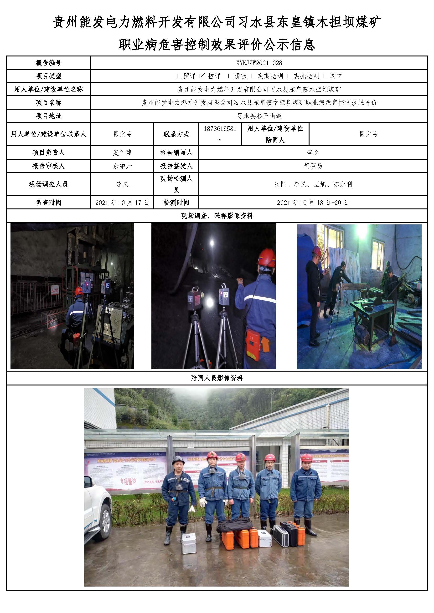 貴州能發(fā)電力燃料開發(fā)有限公司習(xí)水縣東皇鎮(zhèn)木擔(dān)壩煤礦 職業(yè)病危害控制效果評(píng)價(jià)公示信息