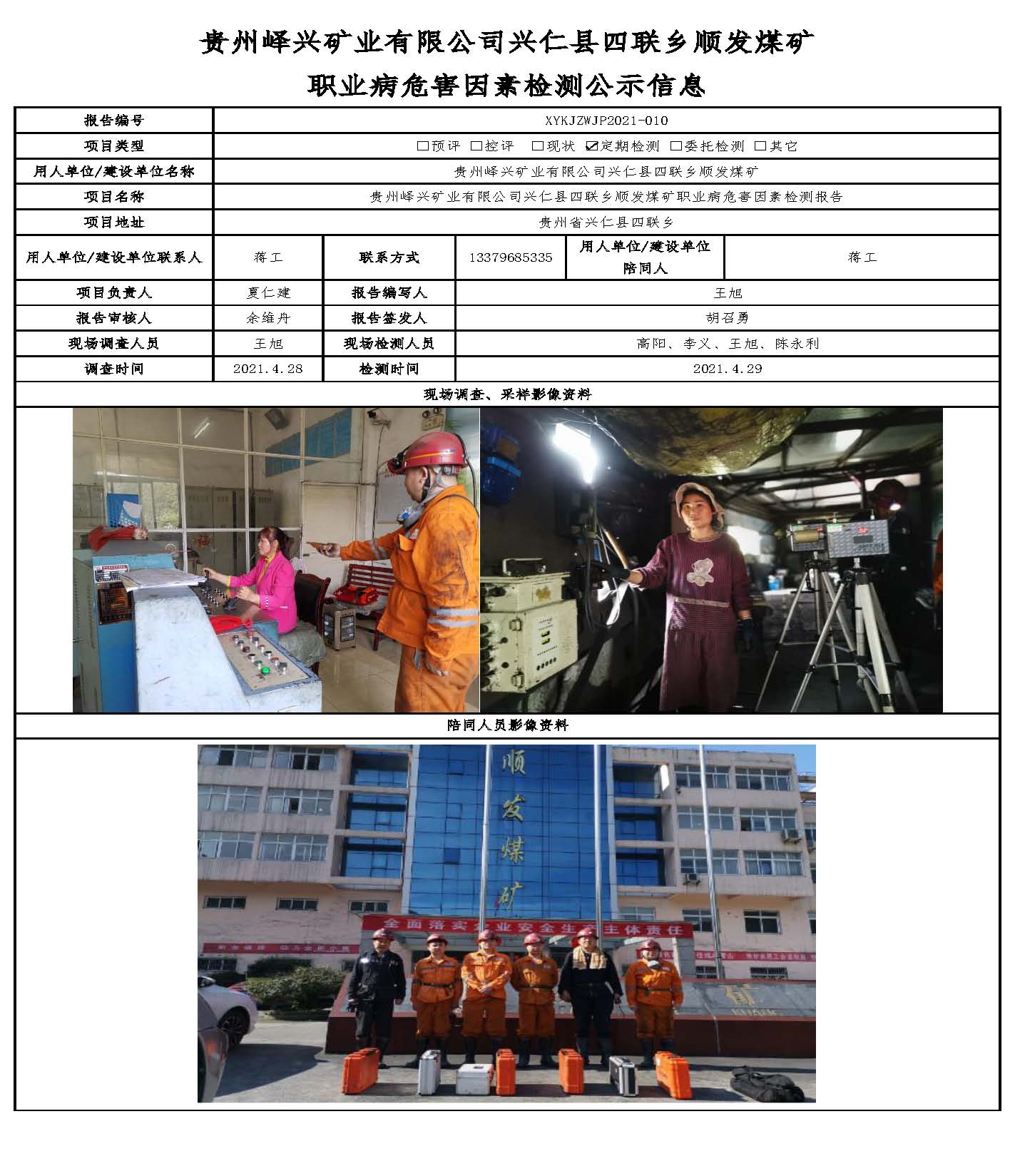 貴州嶧興礦業(yè)有限公司興仁縣四聯(lián)鄉(xiāng)順發(fā)煤礦 職業(yè)病危害因素檢測公示信息