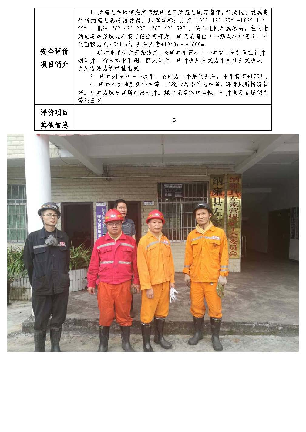 納雍縣鴻騰煤業(yè)投資有限責(zé)任公司納雍縣鬃嶺鎮(zhèn)左家營(yíng)煤礦安全現(xiàn)狀評(píng)價(jià)網(wǎng)上公開(kāi)信息表