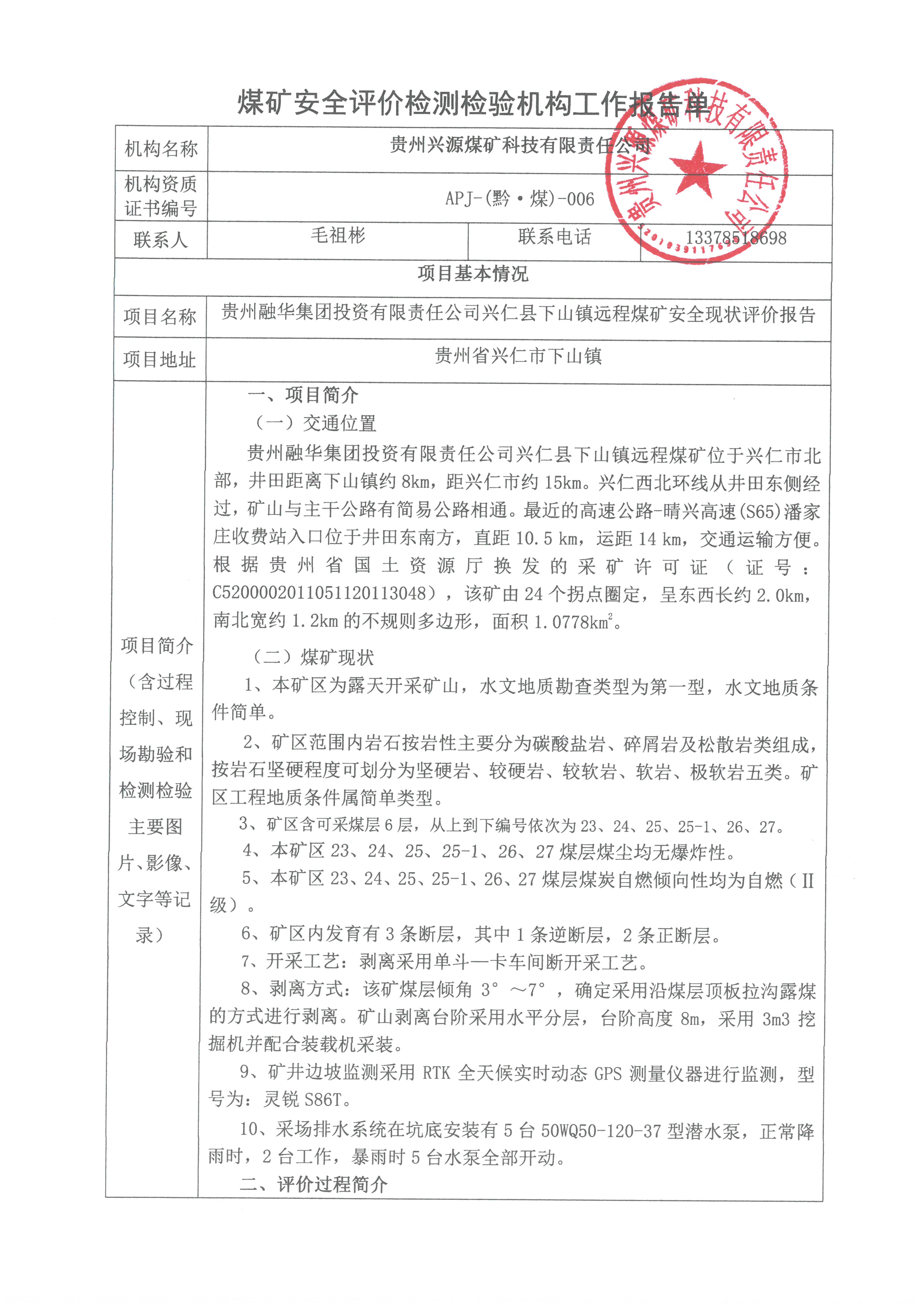 煤礦安全評(píng)價(jià)檢測(cè)檢驗(yàn)機(jī)構(gòu)工作報(bào)告單【鎮(zhèn)雄縣劉家坡煤礦有限公司劉家坡煤礦安全現(xiàn)狀評(píng)價(jià)報(bào)告】