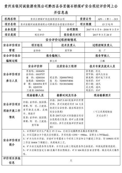 貴州東銀同誠能源有限公司黔西縣谷里鎮(zhèn)石橋煤礦安全現(xiàn)狀評價網(wǎng)上公開信息表