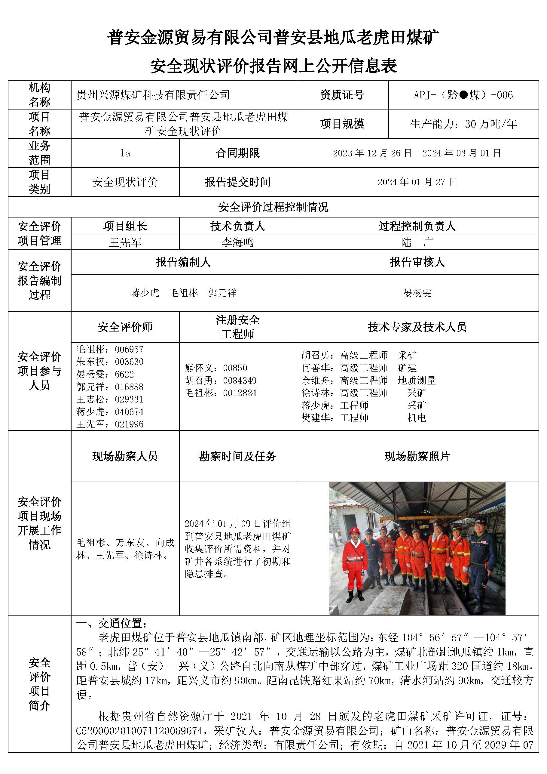 普安金源貿(mào)易有限公司普安縣地瓜老虎田煤礦安全現(xiàn)狀評(píng)價(jià)報(bào)告網(wǎng)上公開信息表