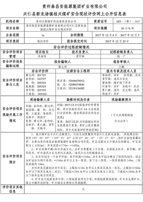 貴州泰昌安能源集團(tuán)礦業(yè)有限公司興仁縣新龍場鎮(zhèn)桂興煤礦安全現(xiàn)狀評價網(wǎng)上公開信息表