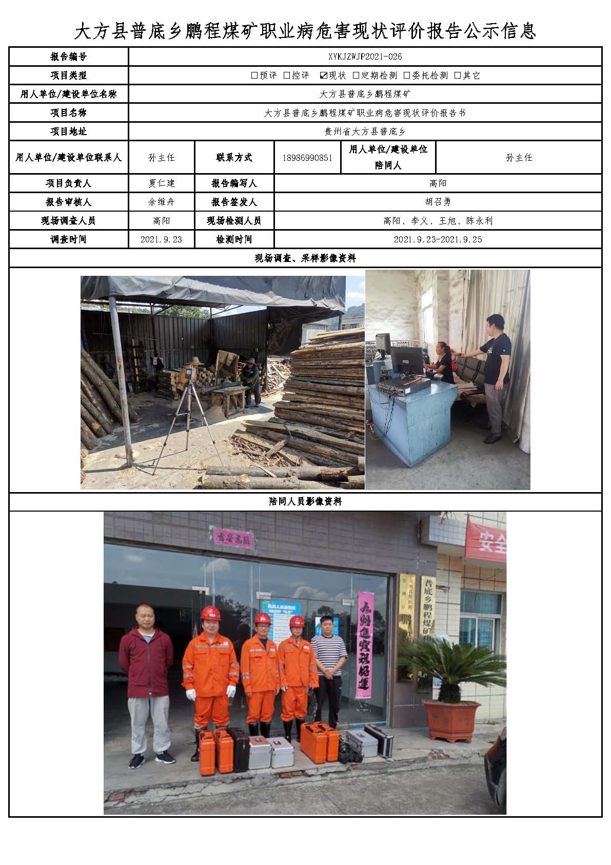 大方縣普底鄉(xiāng)鵬程煤礦職業(yè)病危害現(xiàn)狀評價報告公示信息