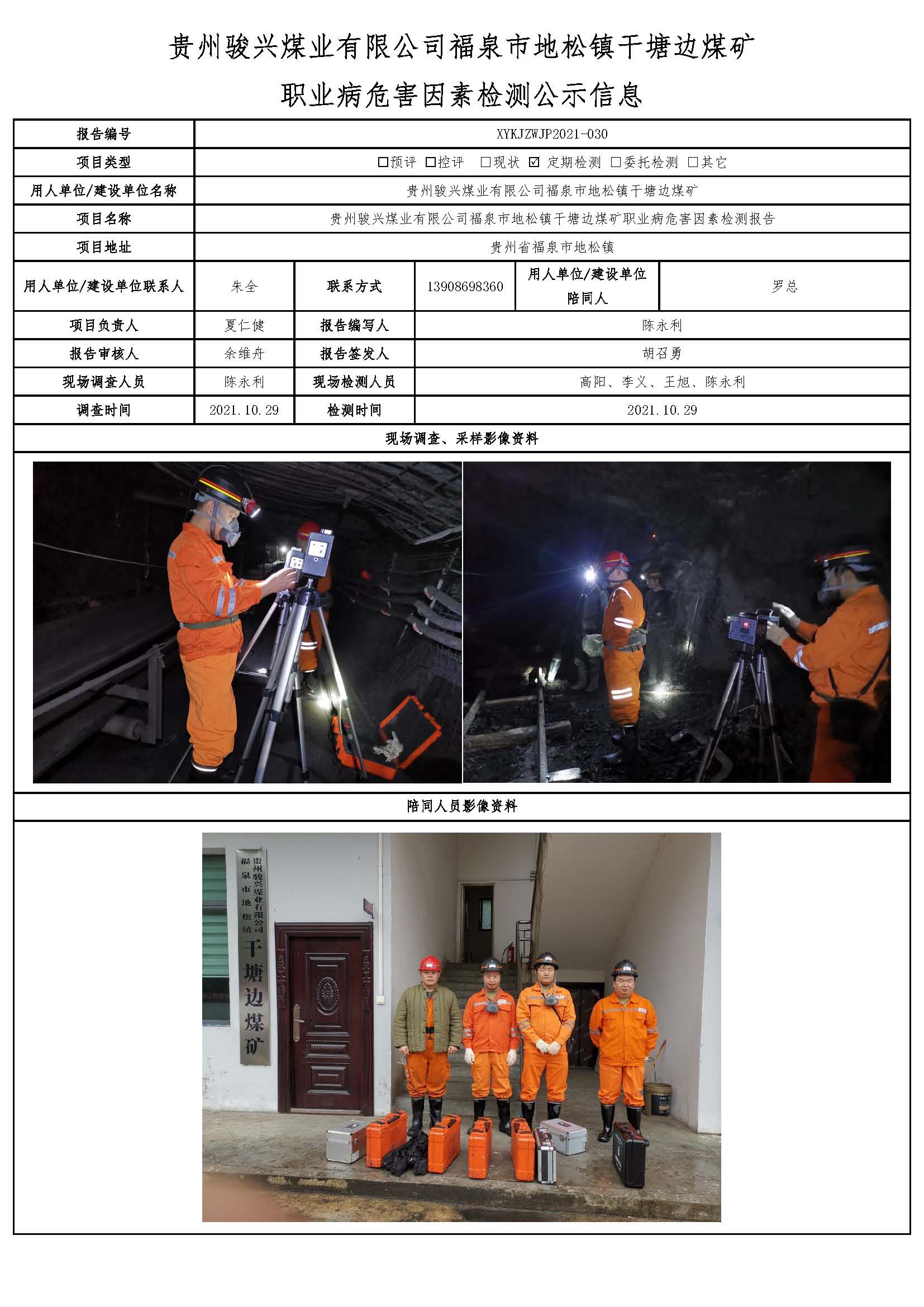 貴州駿興煤業(yè)有限公司福泉市地松鎮(zhèn)干塘邊煤礦 職業(yè)病危害因素檢測公示信息